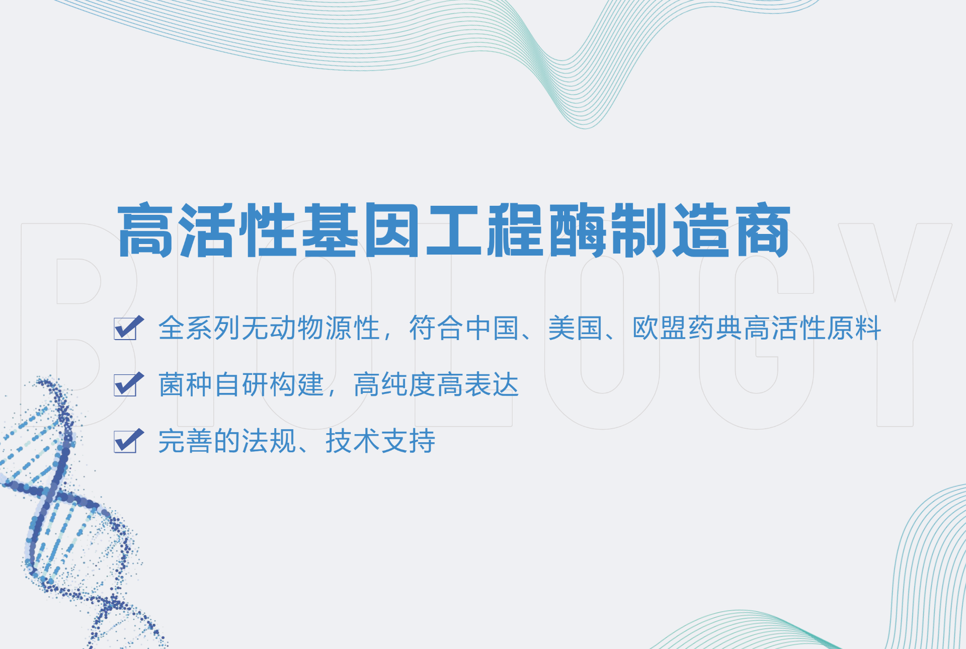 珠海冀百康生物科技有限公司(下稱(chēng):冀百康生物)成立于2015年,擁有前沿的合成生物學(xué)創(chuàng)新技術(shù),專(zhuān)注于“高活性生物原料”與“高端生物制藥”兩大核心領(lǐng)域。產(chǎn)品主要應(yīng)用在抗體、疫苗、蛋白類(lèi)、核酸類(lèi)藥物的生產(chǎn)以及細(xì)胞培養(yǎng)、人造肉、功效護(hù)膚和醫(yī)美領(lǐng)域。冀百康生物擁有符合國(guó)際GMP標(biāo)準(zhǔn)的生產(chǎn)車(chē)間;行業(yè)的競(jìng)爭(zhēng)力主要體現(xiàn)在:研發(fā)創(chuàng)新能力強(qiáng),客戶(hù)服務(wù)系統(tǒng)完善,給品牌客戶(hù)提供完整的解決方案及CDMO/ODM服務(wù)。